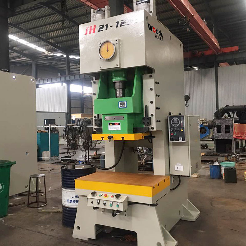 JH21-125T氣動沖床,也叫氣動壓力機,開式單點固定台壓力機,是現代工業生産中常用的機器設備。如下圖所示: